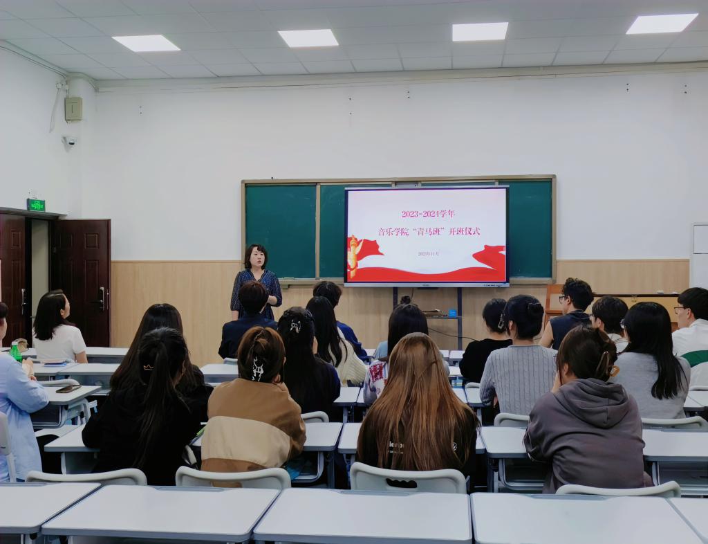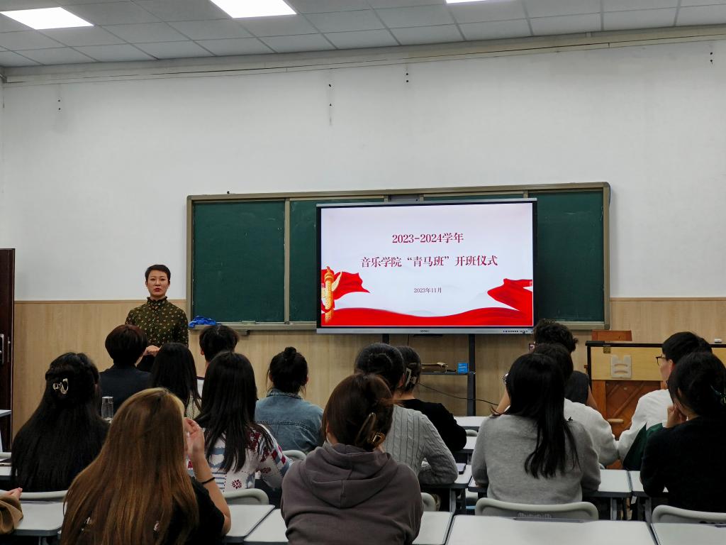 为深入学习贯彻习近平新时代中国特色社会主义思想和党的二十大精神,教育引领广大团员青年成长为坚定的马克思主义者,11月2日下午,我院2023-2024学年“青马工程”培训班正式开班。开班仪式由团总支张洁老师主持,音乐学院党总支副书记祁姗姗、马克思主义学院副院长王爱巧副教授以及30名青马学员参加了此次活动。