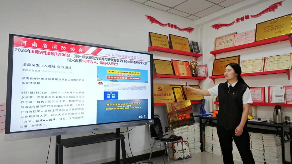河南省消防协会郑东新区消防大队刘宁宁教员主要围绕现代消防三要素即消防知识、消防意识和正确使用消防工具展开详细讲解。在讲解过程中,刘教员重点强调了消防安全相关法律法规和责任划分标准,用火灾事故案例和视频生动讲解了逃生自救能力培养的重要性。最后,以互动的形式向老师们介绍了灭火器、智能烟感和消防应急包等消防器材设备的正确使用方法。