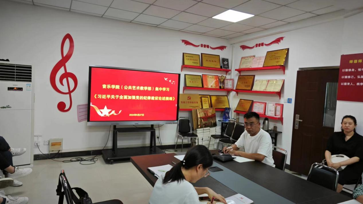 2024年6月27日下午,音乐学院(公共艺术教学部)在403会议室集中学习《全面加强党的纪律建设,确保全党目标一致、团结一致、步调一致——学习<习近平关于全面加强党的纪律建设论述摘编>》,会议由音乐学院院长杨燕主持,全体党员教职工参加。