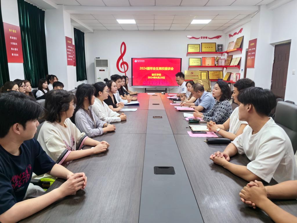 本次毕业座谈会的召开,是2024届毕业生文明离校教育的一个重要环节,增进师生之间的感情,营造欢快的文明离校氛围,也为下一步继续解决同学们关心关切的问题提供了沟通的渠道,便于音乐学院各项工作更好的推进与发展。