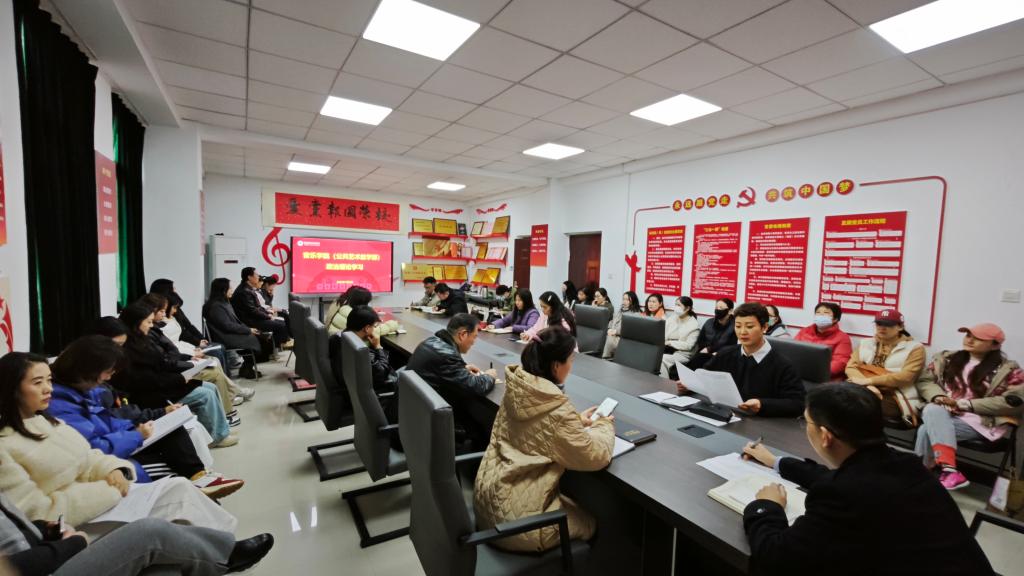 11月25日下午,音乐学院(公共艺术教学部)在A403会议室召开了本学期第十次政治理论学习会议。会议由音乐学院党总支书记张燕祥主持,全体教师参加。