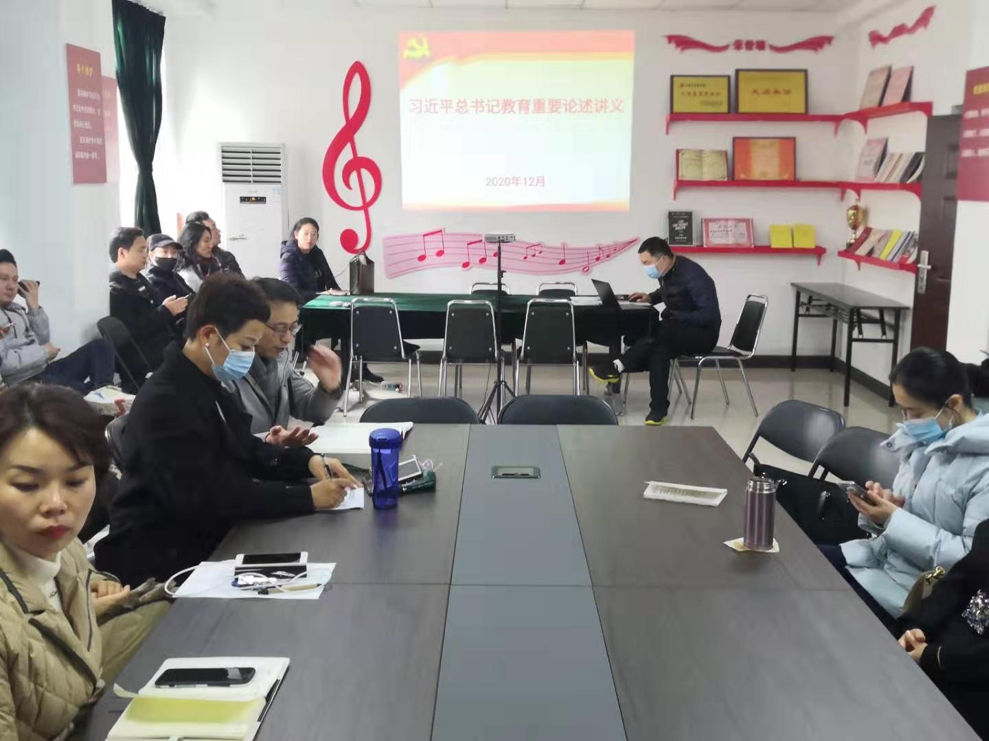 2020年12月10日下午,音乐学院在A403会议室召开专题学习会议,组织学习《习近平总书记教育重要论述讲义》相关文献,会议由音乐学院副院长、教师党支部书记江团结主持,全体党员教职工参加。