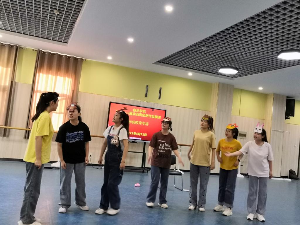 522日下午,音乐学院学前教育专业学生在B301舞蹈教室进行本学期实训周的展演,节目内容丰富多彩,有青春活力的少儿舞蹈、激情澎湃的诗朗诵、活泼可爱的儿童剧……同学们在短短两周的时间用真心与汗水,排演着一个个节目,练习着一句句台词,以最活力的青春模样喜迎党的二十大胜利召开!