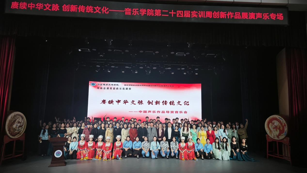 2023年11月13日下午,音乐学院第二十四届实训音乐周“赓续中华文脉 创新传统文化”——中国声乐作品音乐会在音乐厅成功举办。全体声乐专业学生参与了本场演出,音乐学院领导和部分师生观看了本场音乐会。