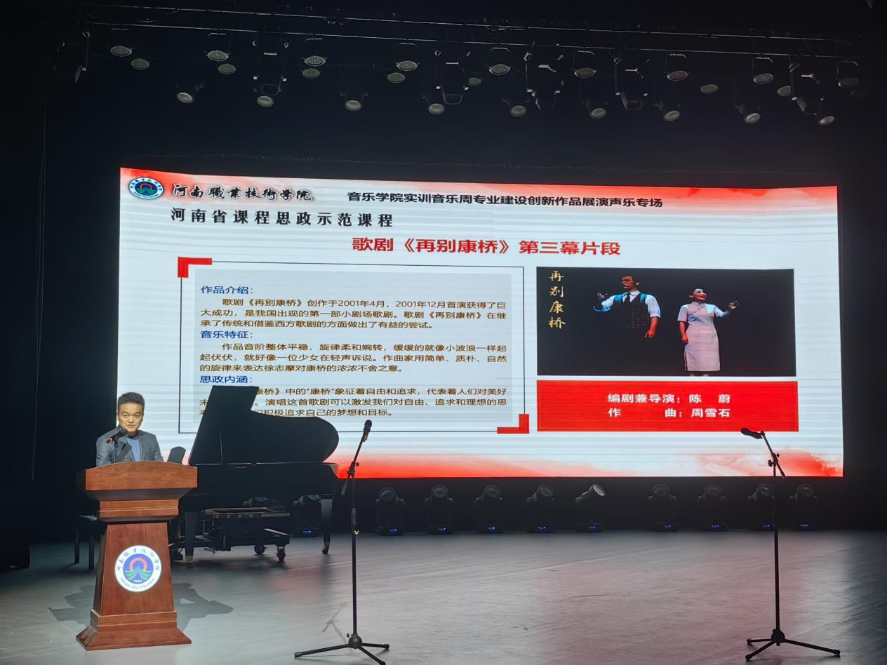 本次音乐会不同于以往,在每首曲目演唱前,由河南省课程思政示范教学团队的几位声乐教师担任了曲目导聆,为观众详细讲解作品的创作背景、音乐特点和思政内涵等,以“讲”、“演”、“赏”相结合的方式,深挖中国声乐作品背后的故事,探寻音乐埋藏在谱面之下的深意,体悟中华优秀传统文化的底蕴与力量。既为观众提供了一场丰富的视听盛宴,也给师生们带来了一堂生动的音乐思政课。