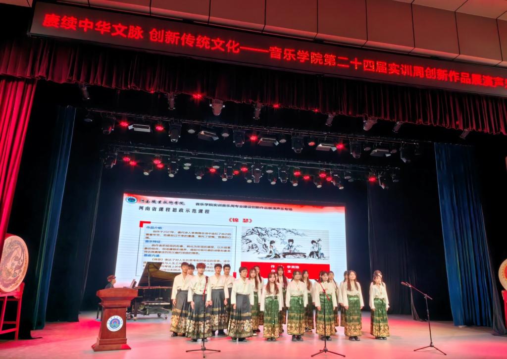 为深入学习贯彻习近平文化思想,坚定文化自信,有效推动中华优秀传统文化的创造性转化和创新性发展,将音乐教育与中华文明的宝贵历史文化资源相融合。本次音乐会突出“赓续中华文脉 创新传统文化”这一主题,选择演唱了中国古诗词作品、中国民歌作品、中国歌剧作品以及中国创作歌曲四种类型的声乐作品,节目形式包括小合唱、表演唱、重唱等多种创编形式,将中华民族传统文化与现代审美相结合。