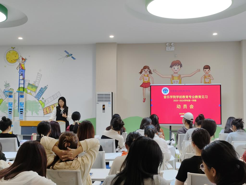 2023年11月2日下午,音乐学院2022级学前教育专业见习动员会在学前实训室303顺利召开。学前教育专业全体教师和2022级学前教育专业全体学生共同参加了本次会议。