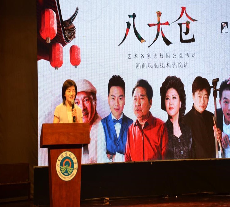 6月16日上午,“八大仓”艺术名家进校园公益活动在我院音乐厅举行。当今豫剧领军人物、中国戏剧家协会副主席、河南省戏剧家协会主席、河南豫剧院院长、著名豫剧表演艺术家李树建,河南豫剧院副院长,河南省豫剧一团团长,著名豫剧表演艺术家王惠,著名曲剧表演艺术家胡希华,河南曲剧团副团长、青年曲胡演奏家张付中,豫剧武生、河南豫剧院青年团的孙敬朋等向我院师生展示了豫剧、曲剧等戏曲的魅力。学院党委书记李四清,院长李桂贞,党委副书记、纪委书记占江与500余名师生共同观看了演出。