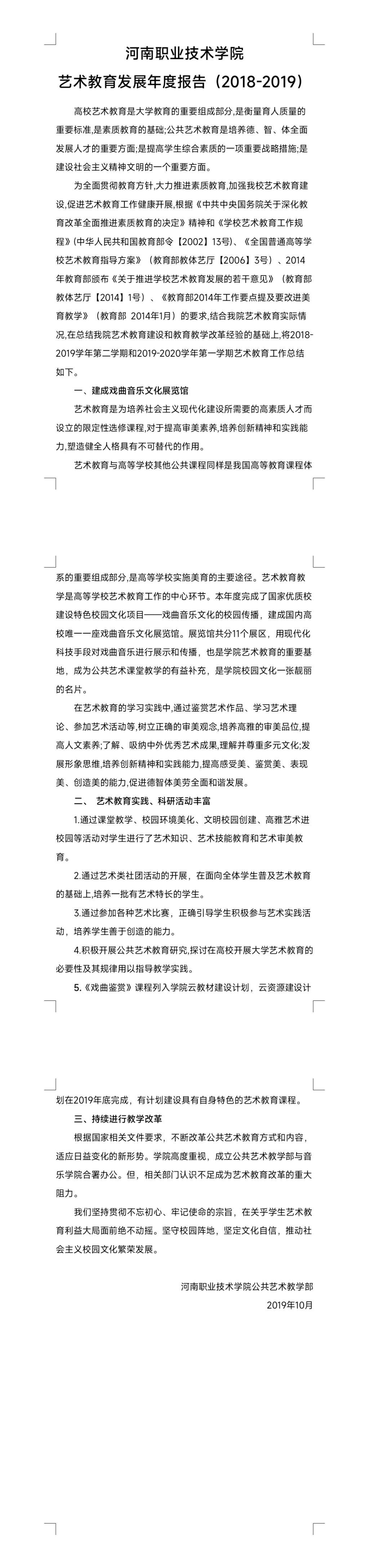河南职业技术学院艺术教育发展年度报告(2018-2019)- 河南职业技术学院公共艺术教学部