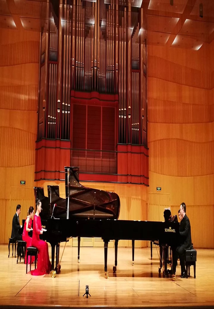 1222日晚,由河南省音乐家协会主办的“不忘初心,出彩中原——大型中国钢琴重奏合奏作品音乐会”在河南艺术中心音乐厅成功举办,公共艺术教学部授课教师团队代表河南职业技术学院参加了此次演出,精彩演绎了中国民歌风格双钢琴作品《猜调》,展示了我院风采。参加本次音乐会的还有全省各个兄弟院校的钢琴教学团队,这次盛会以“颂盛世之歌、扬民族之威、圆复兴之梦”为主题,是全省钢琴艺术界专业交流的一次盛会。