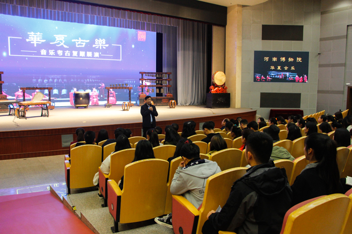 师生一行观看了“大象中原——河南古代文明瑰宝展”,欣赏华夏古乐音乐考古复原展演。师生共同了解了河南厚重历史,品味中原文化魅力,近距离欣赏了古代音乐文化瑰丽、清远、神秘的意境,进一步坚定了对中国文化和中国文明的自信。
