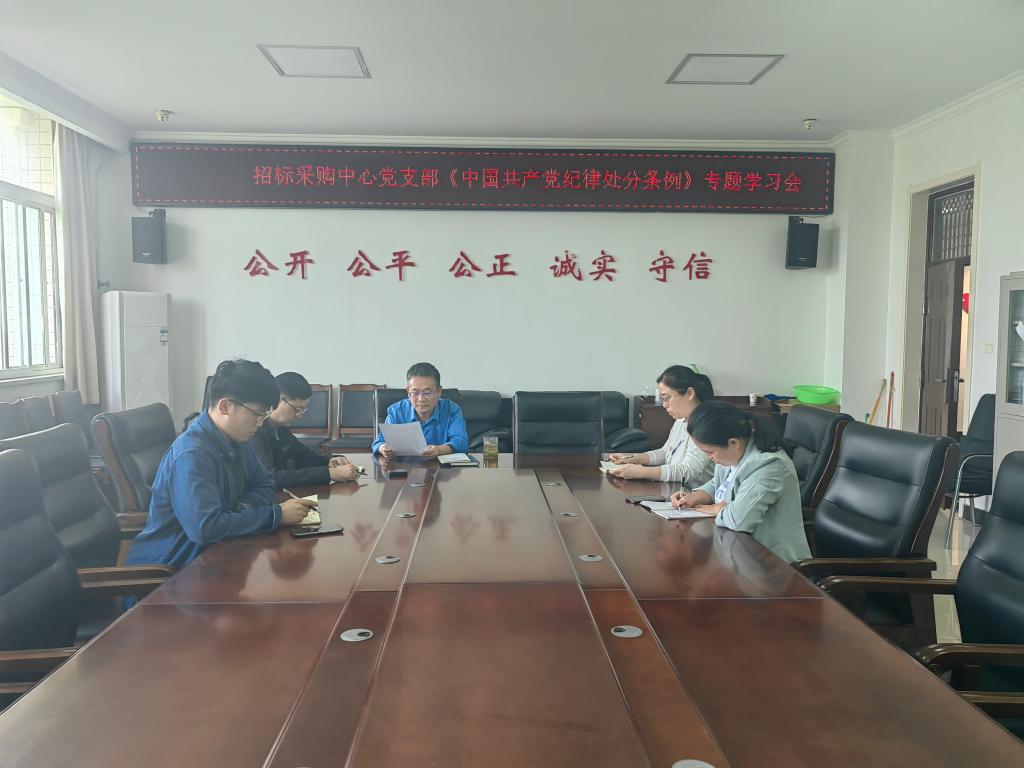 5月7日,招标采购中心党支部组织召开了党纪学习教育专题学习会,刘冰涛同志主持,全体党员参加。
