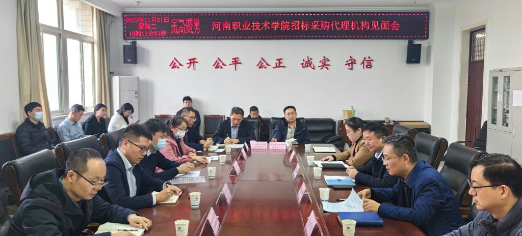 会上,李玉峰对本轮新入选的招标代理机构表示祝贺,介绍了河南职业技术学院的概况,并从严格遵守法规制度、规范对接流程、增强风险意识、注重保密观念、把关意识形态等方面对全体代理机构提出具体的工作要求。