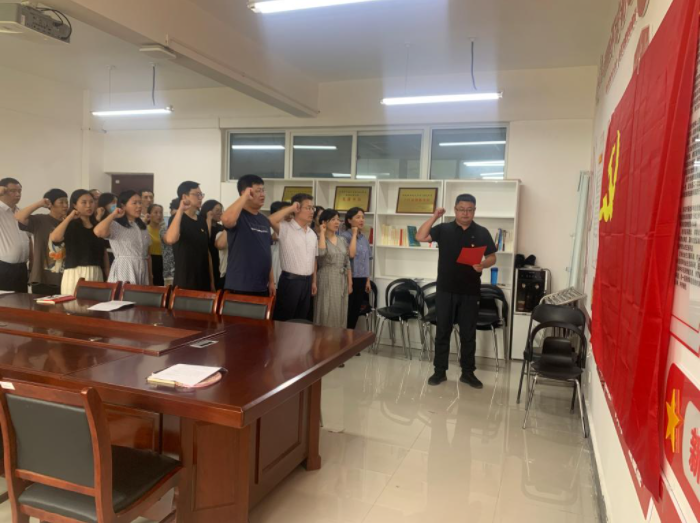 在活动中,四个党支部书记首先领学了《学习语——促进高质量充分就业》《保持解决大党独有难题的清醒和坚定》《汇聚磅礴力量 书写新的华章》和《搞研究不能“只见树木,不见森林”——胡乔木的治学之道》等四篇文章。随后,全体与会党员在庄严的党旗下重温了入党誓词,铿锵有力的誓词让在场每个人都深受心灵的震撼和洗礼,汇聚起矢志不渝跟党走的磅礴力量。刘冰涛书记表示,全体党员要加强理论学习,立足岗位,主动作为担当,继续以严格的要求和昂扬的状态高质量完成各项工作,以优异成绩庆祝中国共产党成立102周年。(供稿:张一宁 审稿:刘冰涛)