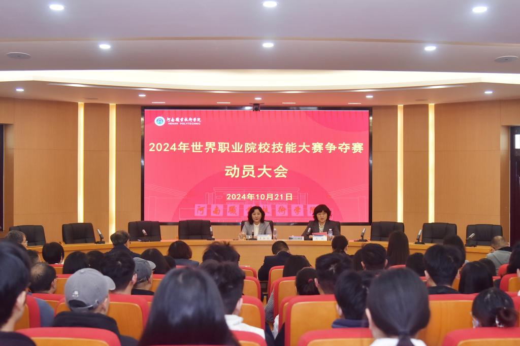 10月21日下午,河南职院在行政楼239会议室召开了2024年世界职业院校技能大赛动员会。校长夏新颜、副校长肖珑出席会议。相关二级学院院长、主管技能大赛副院长,各赛项指导教师、参赛选手及综合实训中心相关人员参加了会议。