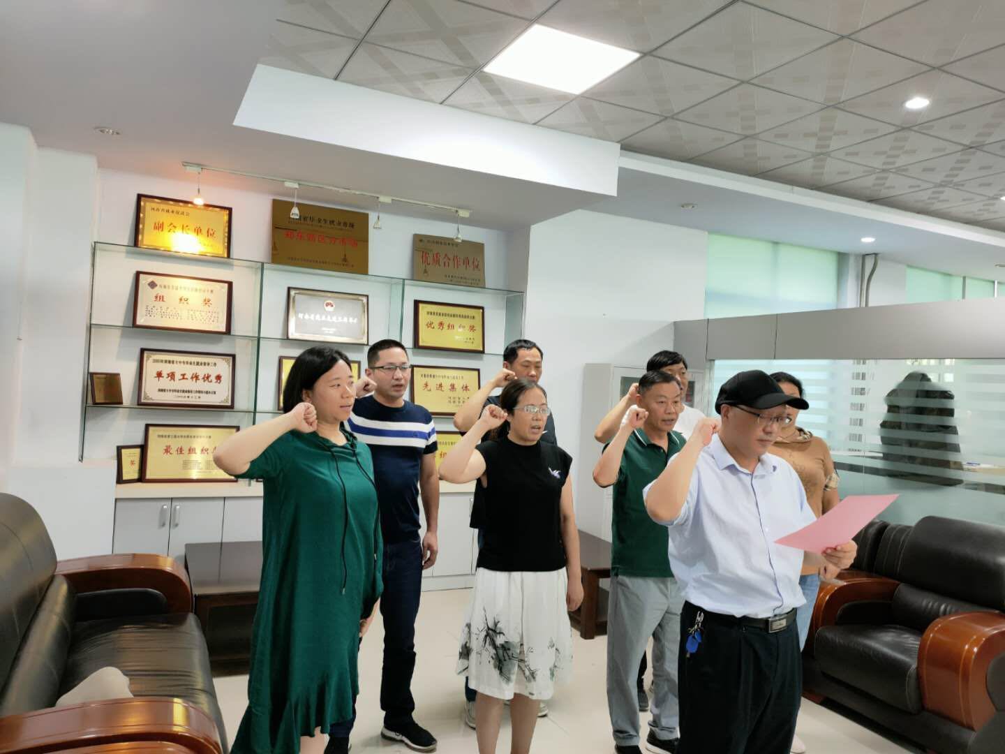 在招生就业处鲁冬处长的领誓下,每一位教师郑重宣誓,“忠于党的教育事业,履行教师神圣职责。诚实为人,踏实做事。热爱学生,为人师表。依法执教,教书育人。团结协作,甘于奉献…”慷慨激昂的宣誓,展现每一位河职招就人服务师生和为教育事业的坚守的决心。