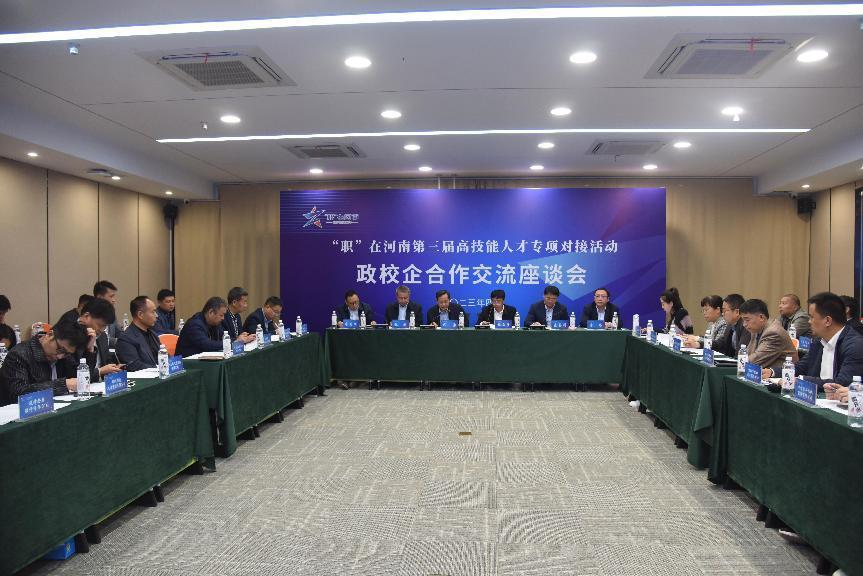 为积极搭建人才互动、资源互通的交流对接平台,培育更多适应我省现代产业体系发展的高素质复合型、实践型、创新型技术技能人才,我校与省就业创业服务中心共同邀请郑州、开封、洛阳、平顶山等14个地市公共就业服务机构及13家用人单位召开了“职”在河南第三届高技能人才对接交流座谈会。河南省就业创业服务中心主任代勇,副主任赵杰、崔秀池,我校校长梅乐堂、工会主席夏喜利及相关部门负责人出席了本次会议。