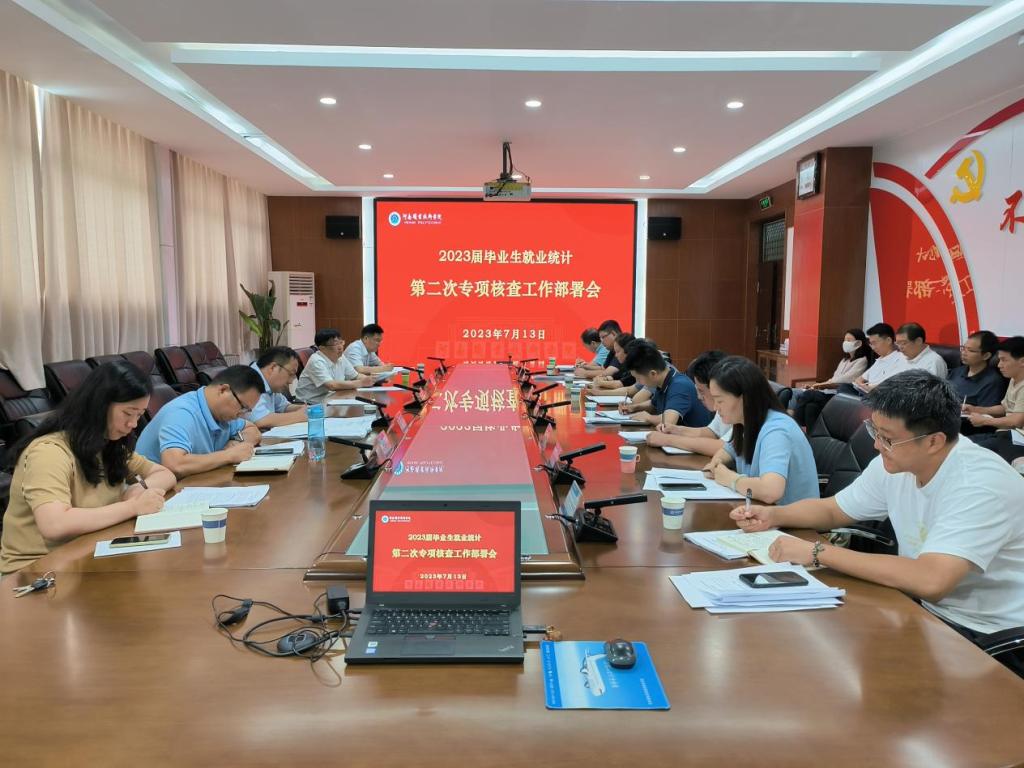 为进一步规范毕业生就业统计工作,确保就业数据真实准确,2023年7月13日,我校召开了2023届毕业生就业统计第二次专项核查工作部署会,校长梅乐堂出席会议并讲话,招生就业处处长鲁冬主持会议,十所二级学院书记、副书记、就业专干、招生就业处相关工作人员参加会议。