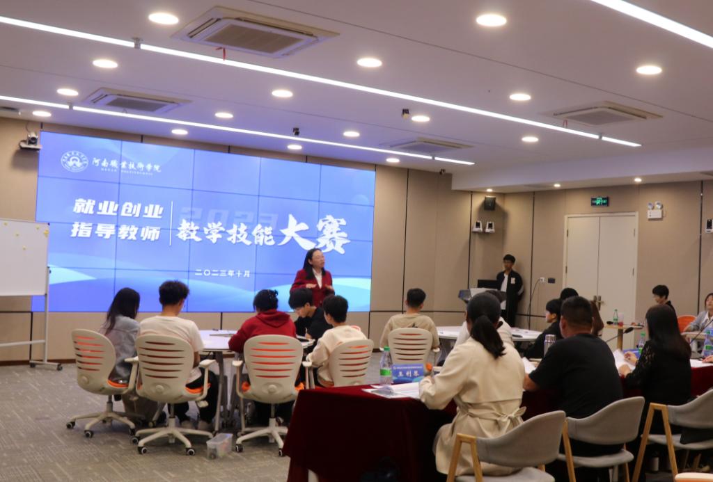 为加快构建高质量教育体系,提升全校就业创业师资队伍专业化水平,建设高素质的就业创业指导队伍,10月26日下午,我校在3110智慧教室举办2023年就业创业指导教师教学技能大赛,以赛促教,强师赋能。经过层层遴选,5位就业创业教师进入大赛现场赛,学校督导组5位专家教授担任大赛评委,全体就业创业指导教师现场观摩。