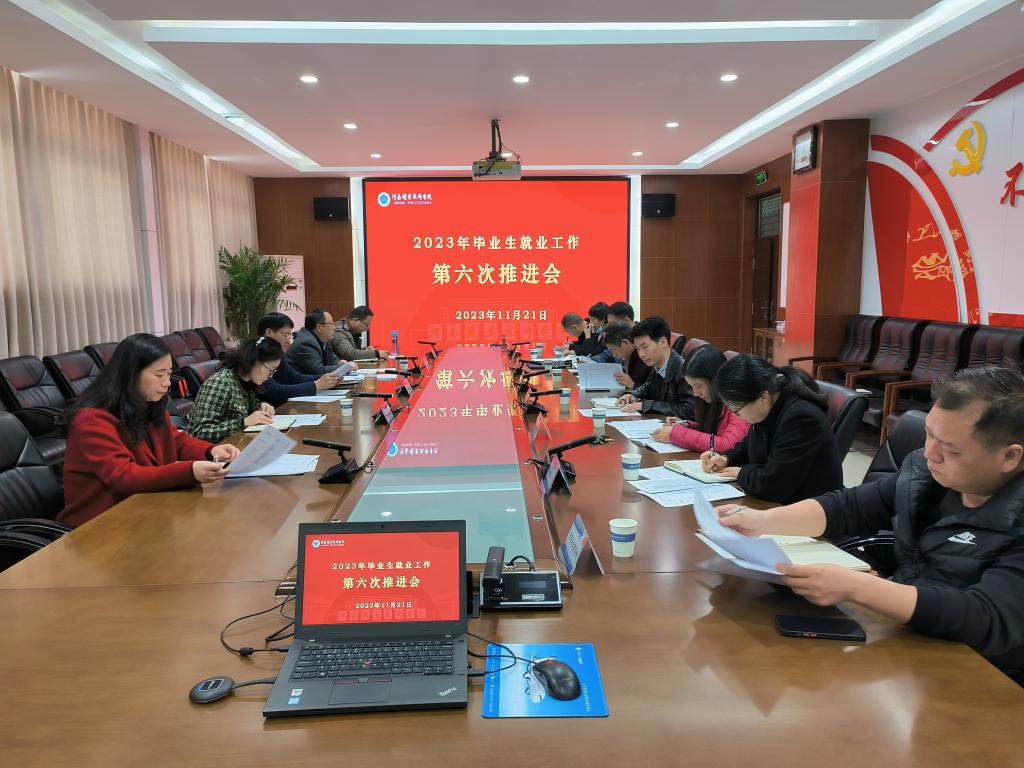 11月21日上午,我校2023年毕业生就业工作第六次推进会在行政楼332会议室举行,各二级学院党总支书记、招生就业处工作人员参会,工会主席夏喜利主持会议并讲话。