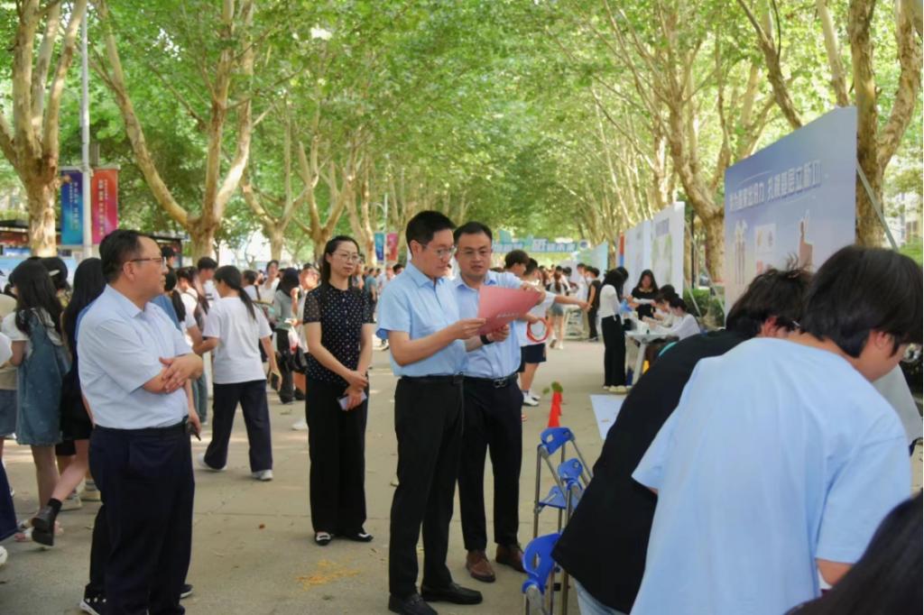 6月13日下午,河南职院“就业政策、职业规划”宣传月成果展活动在周始路举行。校党委书记厉励、副校长鲁冬出席活动并巡展。党政办、招生就业处、各二级学院相关负责人及师生代表参加活动。
