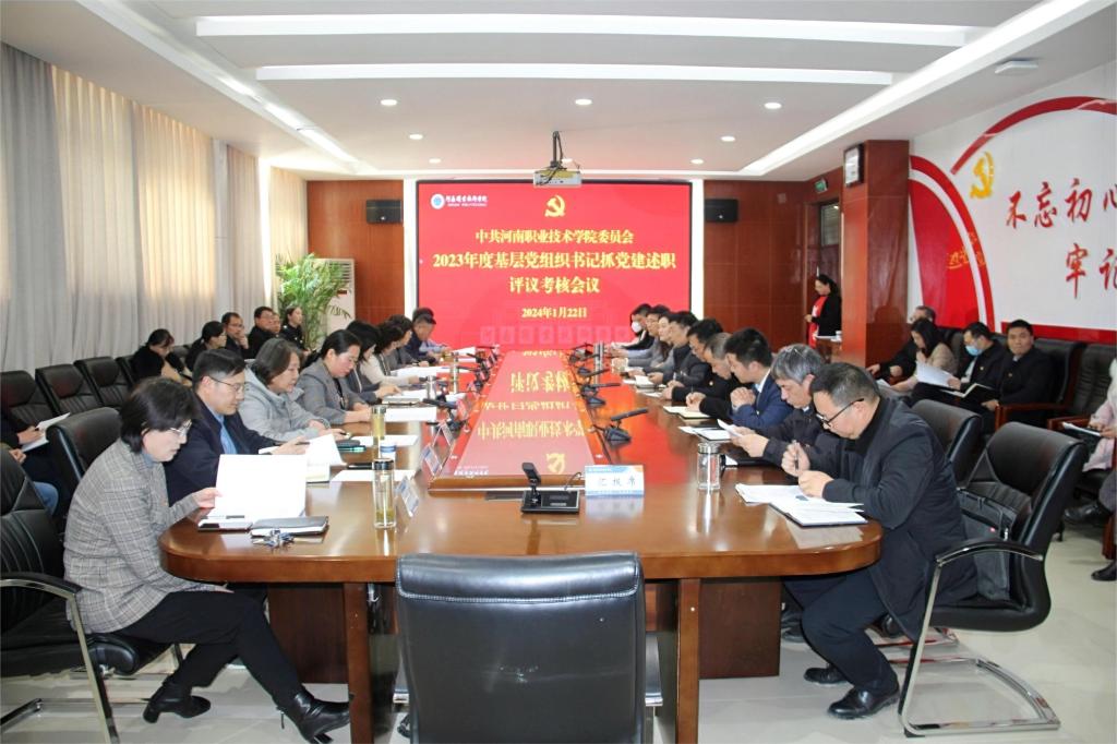 1月22日下午,我校在行政楼332会议室召开了2023年度党组织书记抓基层党建工作述职评议考核会议。校党委全体成员、各党总支书记、副书记,直属党支部书记,党政办、组织部、宣传部、纪检监察室、工会、团委、学工部、人事处等部门负责同志和二级学院党支部书记代表共55人参加了会议。会议由党委书记李桂贞主持。