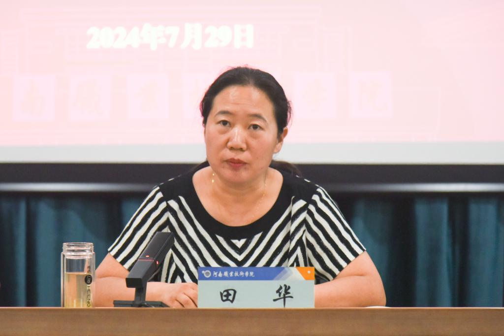 田华在讲话中指出,此次轮岗交流是校党委对中层干部队伍进行的一次重要调整,也是提升干部综合素质、激发工作活力的重要举措,希望大家在新的工作岗位上,积极发挥“勇于担当、敢拼敢闯、永不服输、追求卓越” 的河职精神,用自己的实际行动诠释什么是责任、什么是担当、什么是奉献。她强调,轮岗交流不仅有助于打破部门壁垒,促进跨部门合作与沟通,更有利于拓宽干部的视野,增强干部的适应能力和创新能力。作为领导干部,核心在“领”,根本在“导”,关键在“干”,基础在“部”,想当好领导干部,要做到“三个领”,政治引领、方向统领、品格率领;要做到“三个导”,学习先导、专业指导、思想疏导;要做到“三个干”,真情实干、踏实肯干、担当敢干;更要做到“三个部”,建强支部、用好干部、打牢根部,树立新征程上忠诚、干净、担当的优秀领导干部标准。她指出,领导干部要学会涵养“五气”,要提高站位,放大格局,心胸宽广,心态良好,增强适应能力,弘扬求真务实作风,注重团结协作,为本部门单位和学校建设发展贡献更多的智慧和力量。同时,她还从维护领导班子集体形象、坚持民主集中制、加强班子成员的团结、努力形成工作合力等四个方面对调整后的各二级单位领导班子建设提出具体要求。