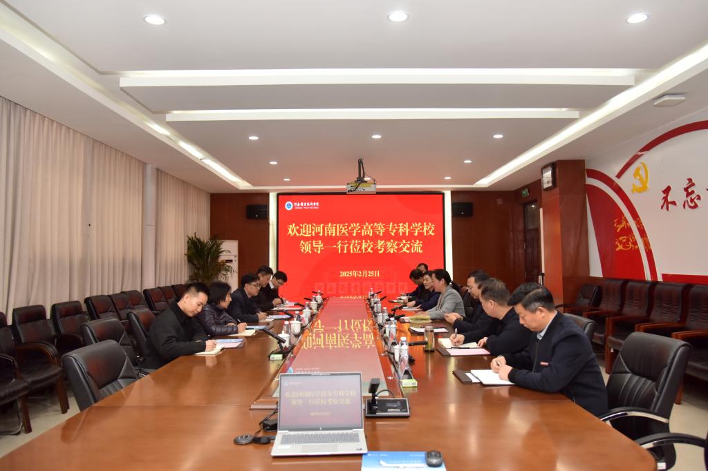 2月25日上午,河南医学高等专科学校党委副书记、工会主席李鹏涛一行来校考察交流。校党委副书记、工会主席田华,校党委委员、副校长朱永宽出席座谈会。党委组织部、党委学生工作部等职能部门负责人及相关人员参会。