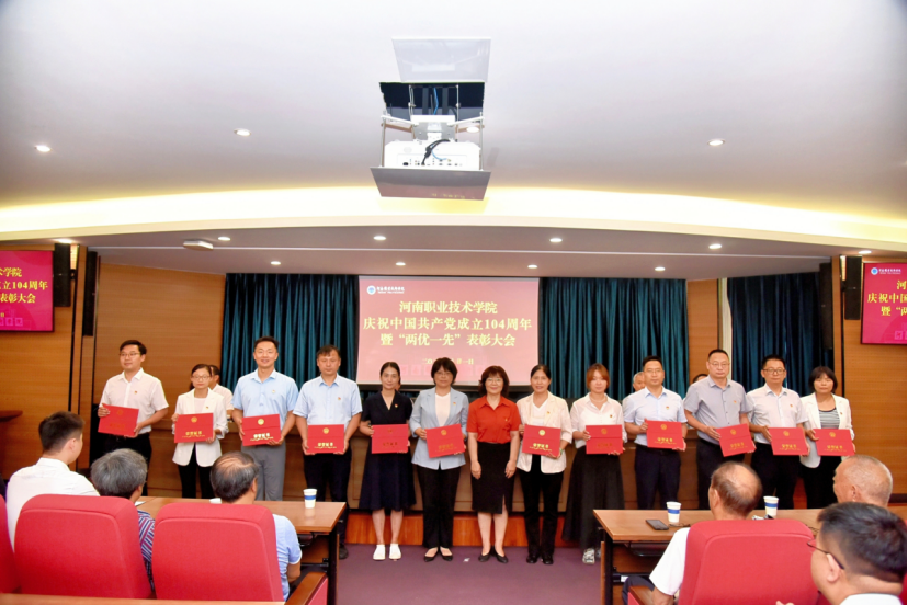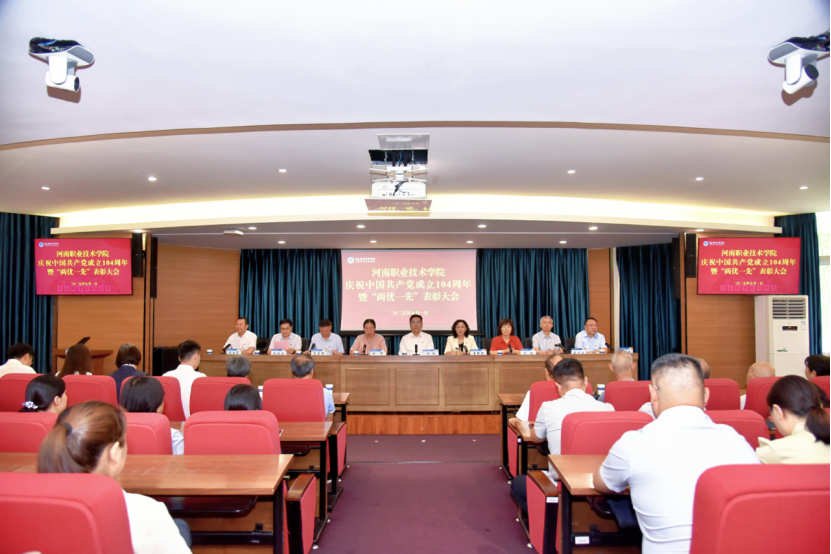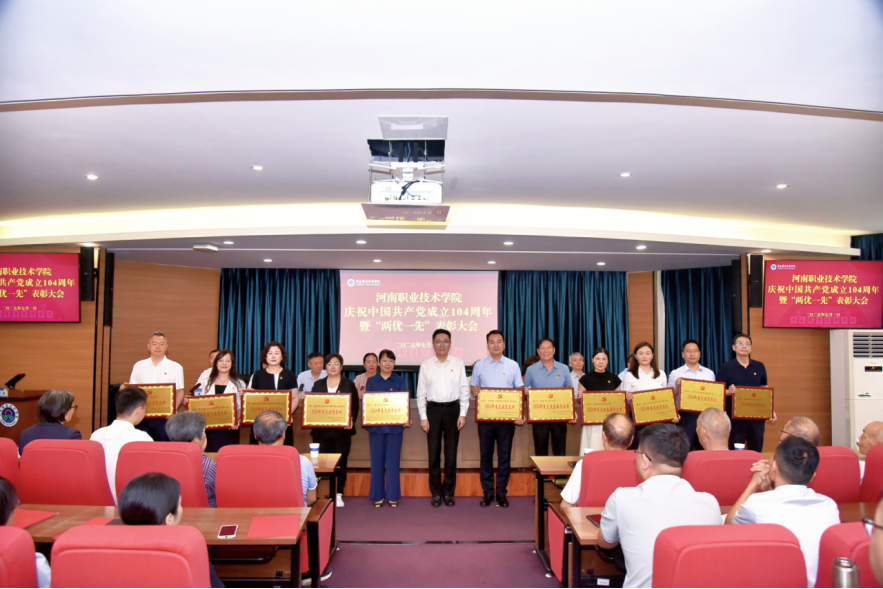 7月1日,河南职院隆重举行庆祝中国共产党成立104周年暨“两优一先”表彰大会,回顾中国共产党的光辉历程和丰功伟绩,表彰优秀共产党员、优秀党务工作者和先进基层党组织,激励广大党员和各级党组织,以先进典型为标杆,汲取力量、奋勇争先、开拓进取,奋力谱写学校事业高质量发展崭新篇章。全体校领导,各基层党组织书记、副书记,受表彰的优秀共产党员、优秀党务工作者、新发展党员代表,以及离退休党员代表共140余人参加会议。会议由校党委副书记、工会主席田华主持。