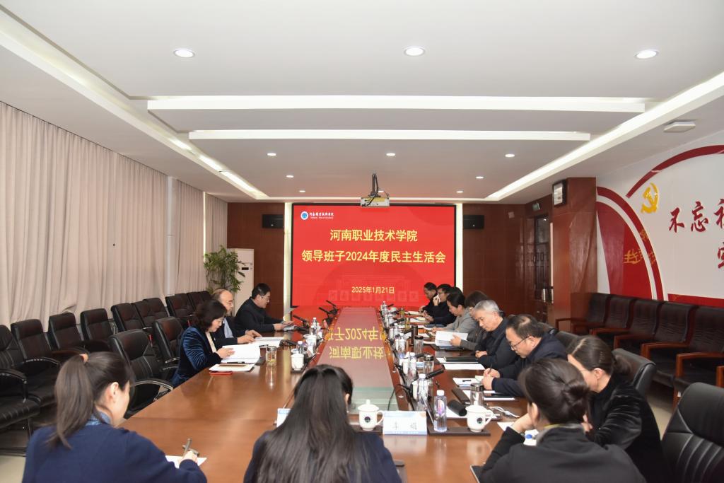 1月21日下午,学校领导班子2024年度民主生活会在行政楼332会议室召开。领导班子全体成员紧紧围绕深入学习贯彻习近平新时代中国特色社会主义思想,巩固深化党纪学习教育成果,综合发挥党的纪律教育约束和保障激励作用这一主题,认真对照检视、查摆分析,开展批评和自我批评,民主生活会开出了高标准高质量,达到了预期效果。河南省教育厅二级巡视员曹克舜出席会议。会议由校党委书记厉励主持。学校领导班子全体成员参加会议,党政办、党委组织部、党委宣传部、纪委办公室等相关部门负责人列席会议。